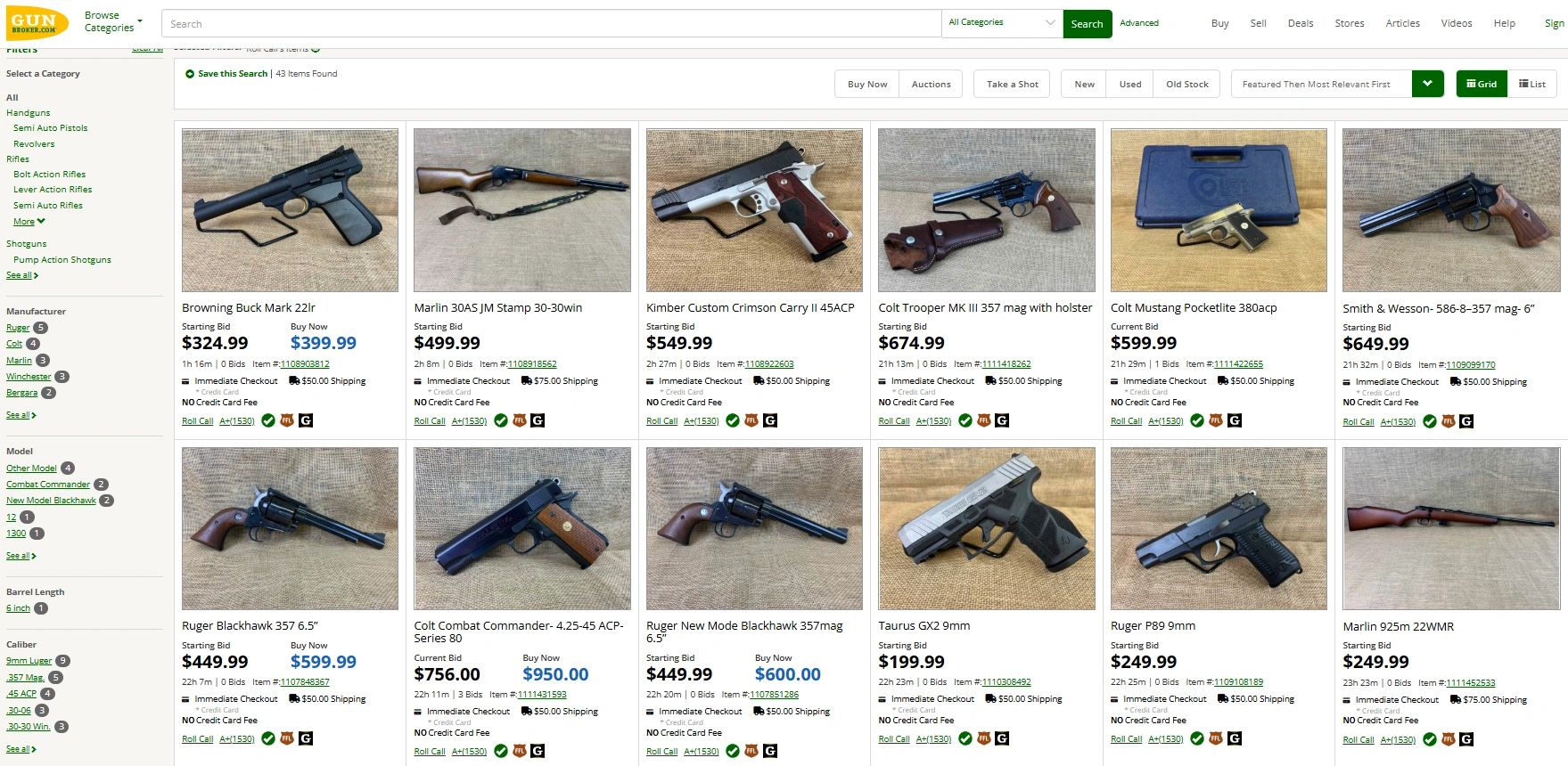 GunBroker is the world’s largest online marketplace for firearms and shooting sports. We list a wide selection of new and used firearms with listings updated regularly, all available for secure purchase and shipment to your local FFL.